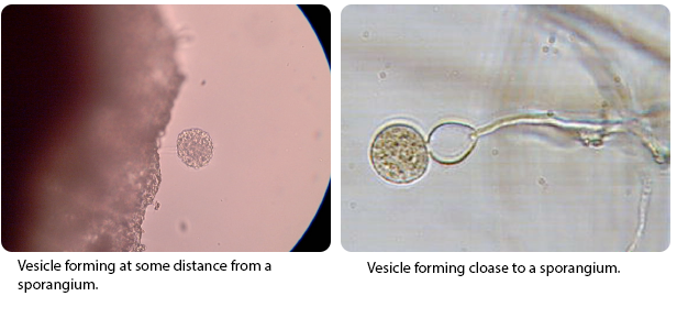 Left: Vesicle forming at some distance from a sporangium. Right: Vesicle forming close to a sporangium.